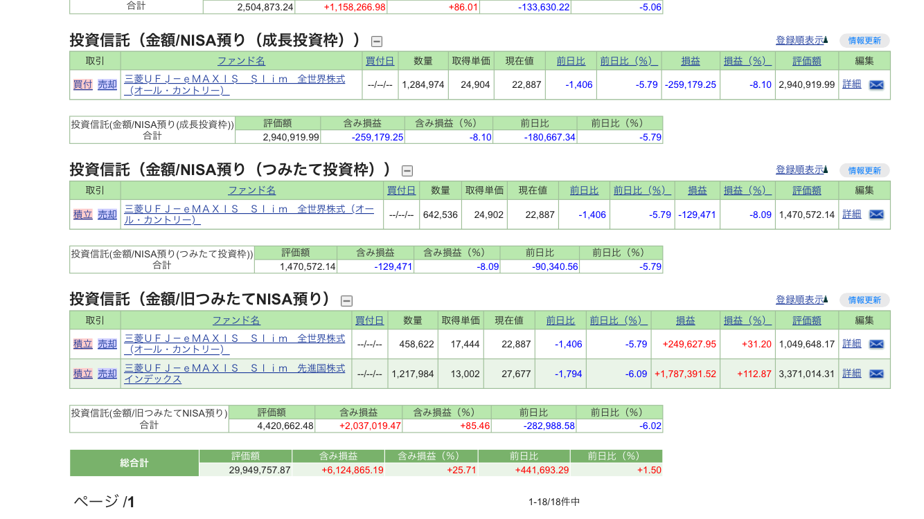 メイン証券であるSBI証券のみの資産状況を簡易的にご報告します。