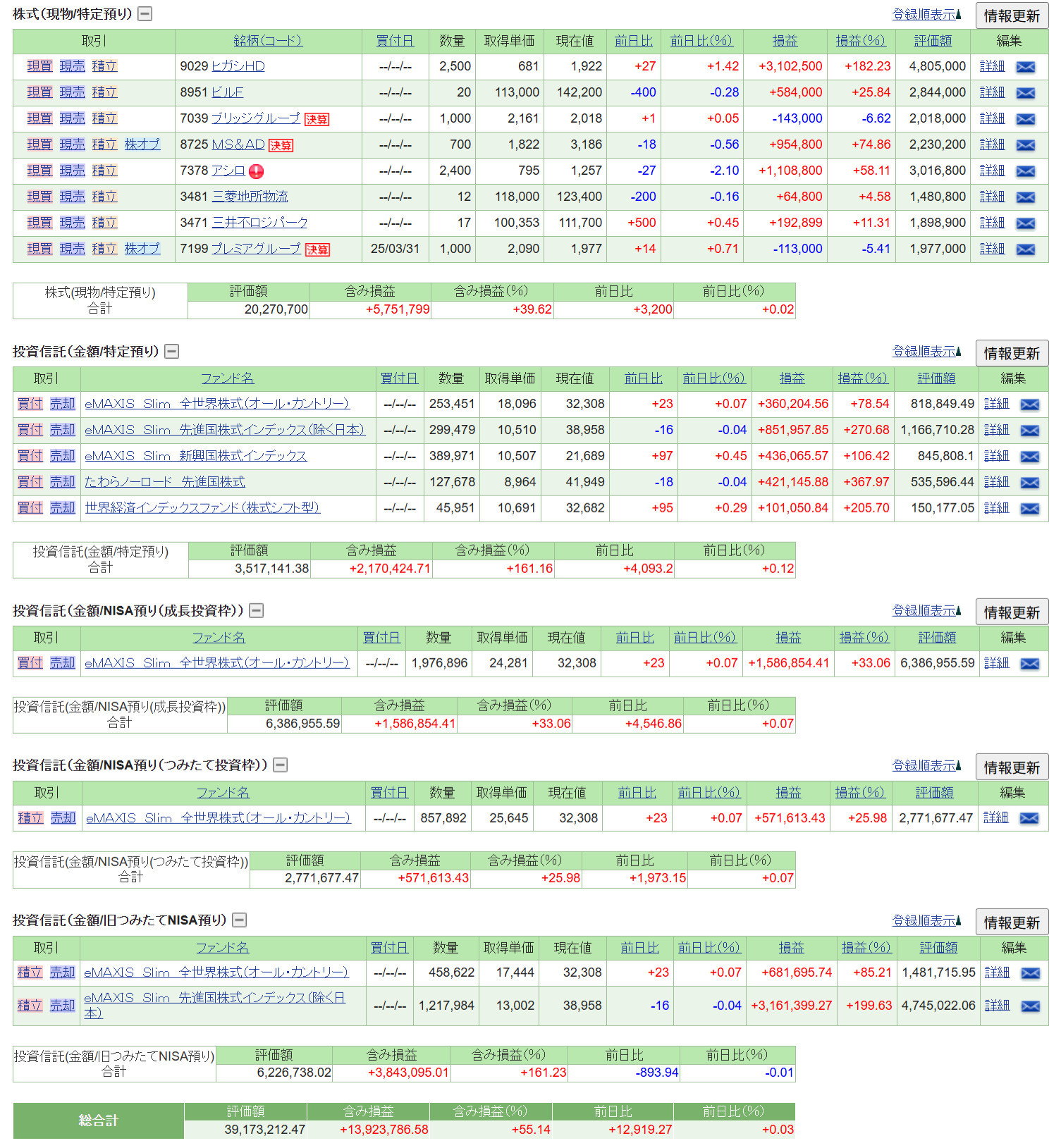 保有銘柄詳細です。