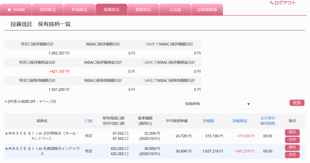 2025年10月時点での総資産は下記となりました。