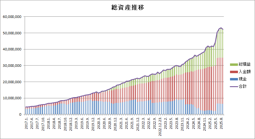 総資産 | 52,207,490円 | -1,049,269円 | -2.0% |