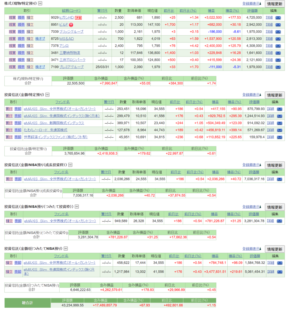 メイン証券であるSBI証券のみの資産状況を簡易的にご報告します。