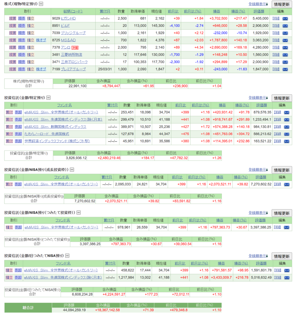 メイン証券であるSBI証券のみの資産状況を簡易的にご報告します。